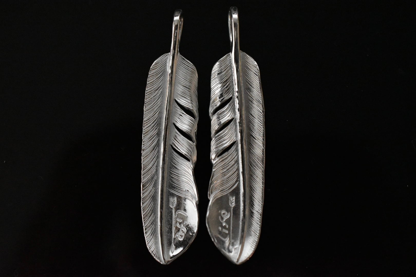 リアルなイーグルの躍動感のある足を、職人の手で、銀の塊を削ってハンドメイドで形にしたeagle footをsetしたfeatherになります。